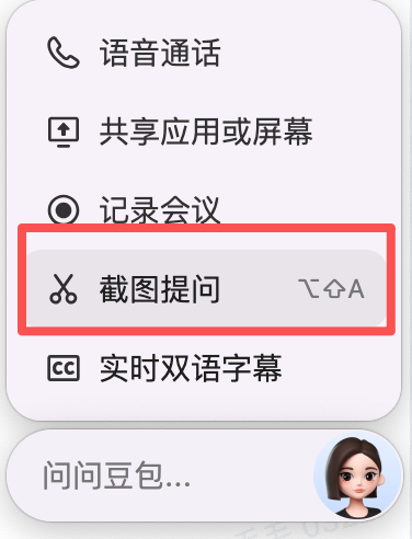 第二步:打开豆包,启用截图提问功能